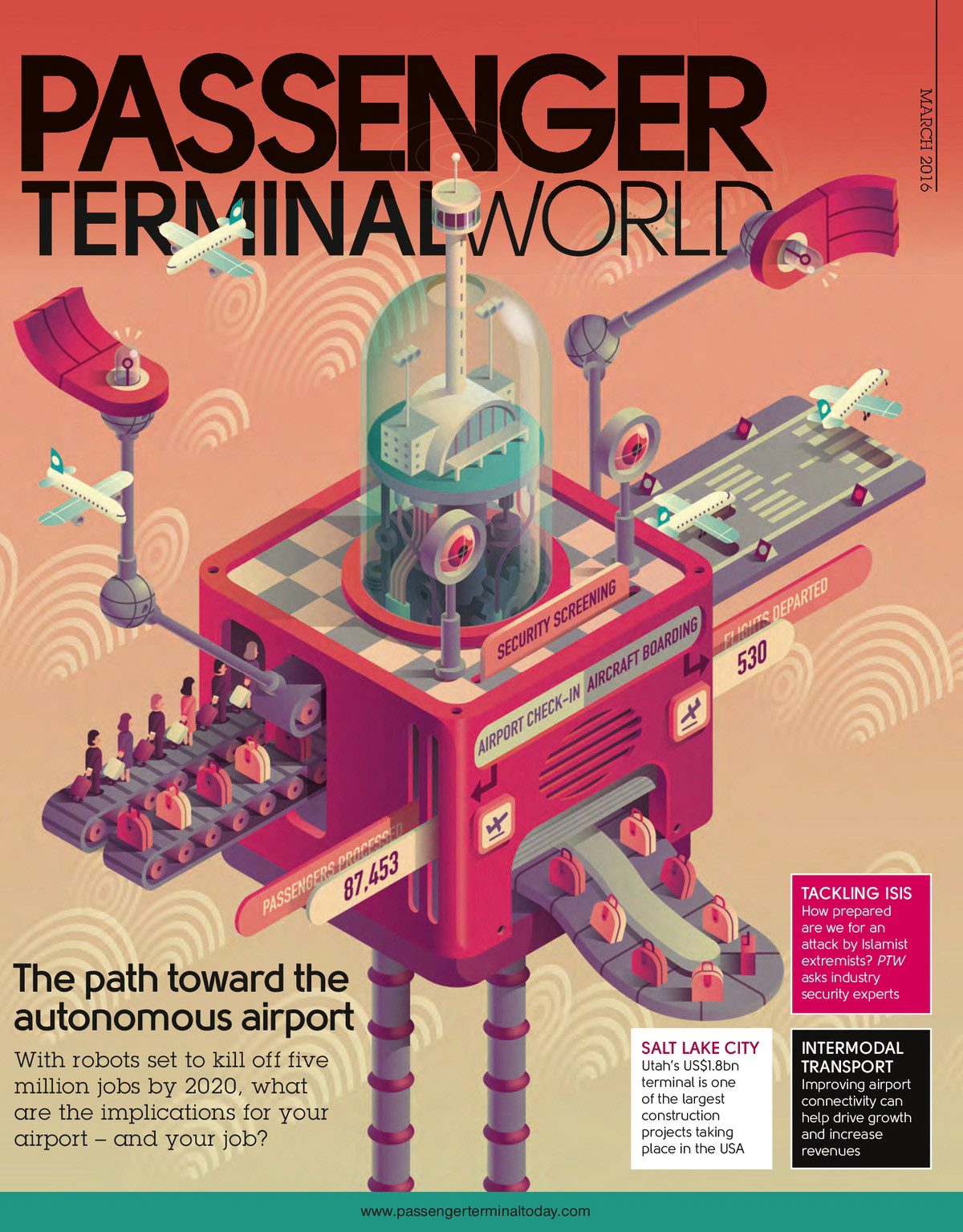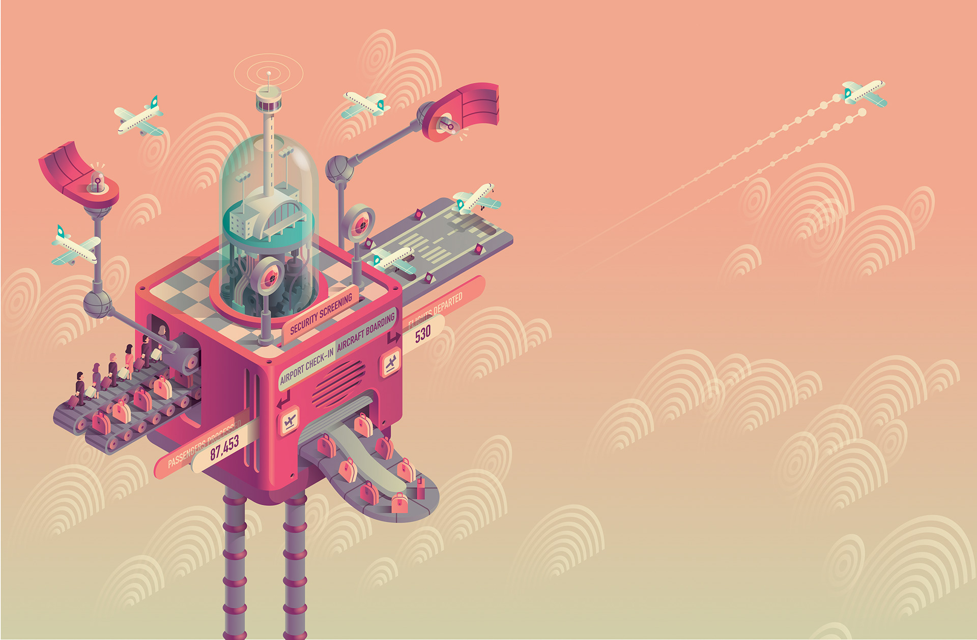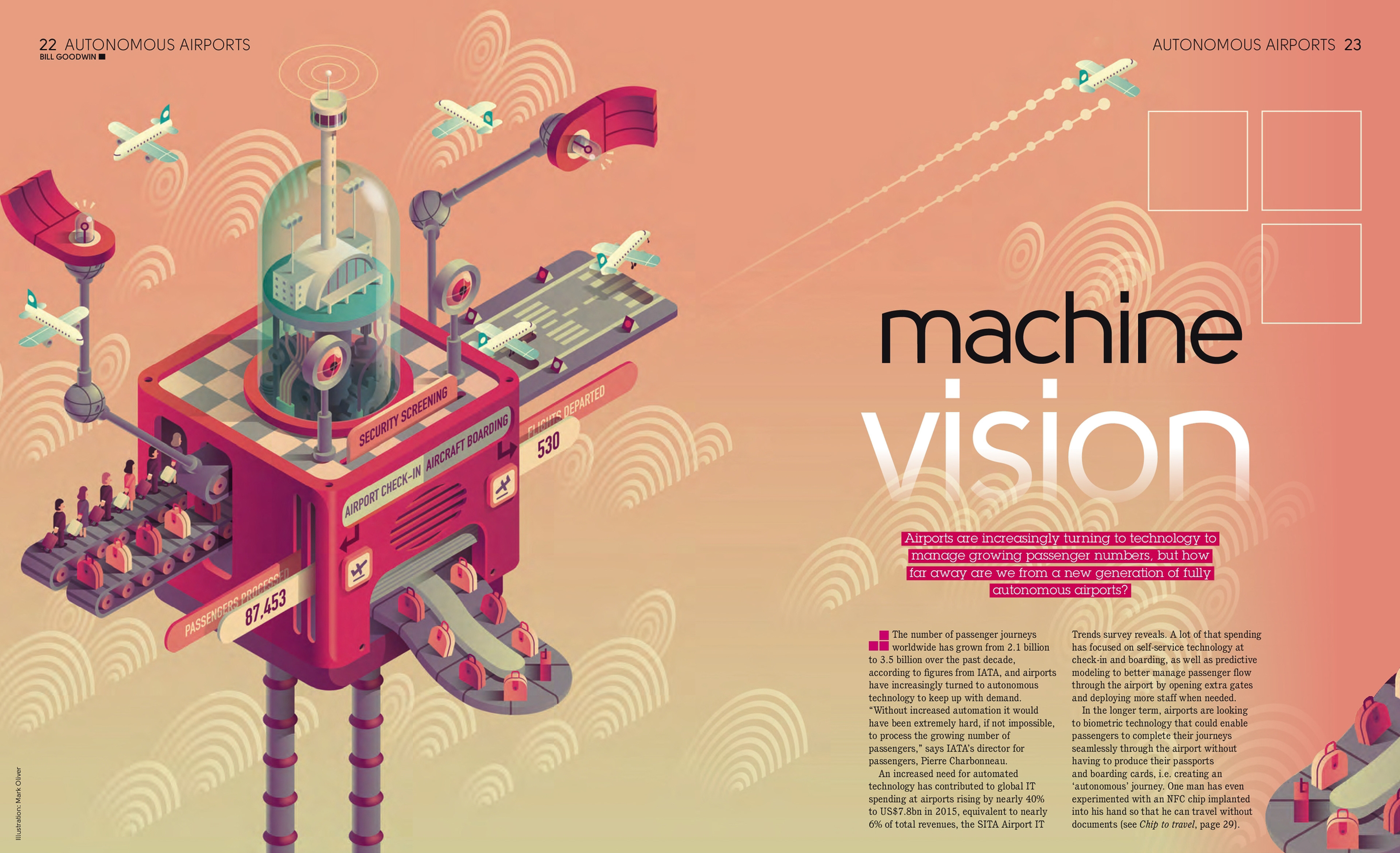 The brief was to illustrate an article about the rise of automation in modern airports.