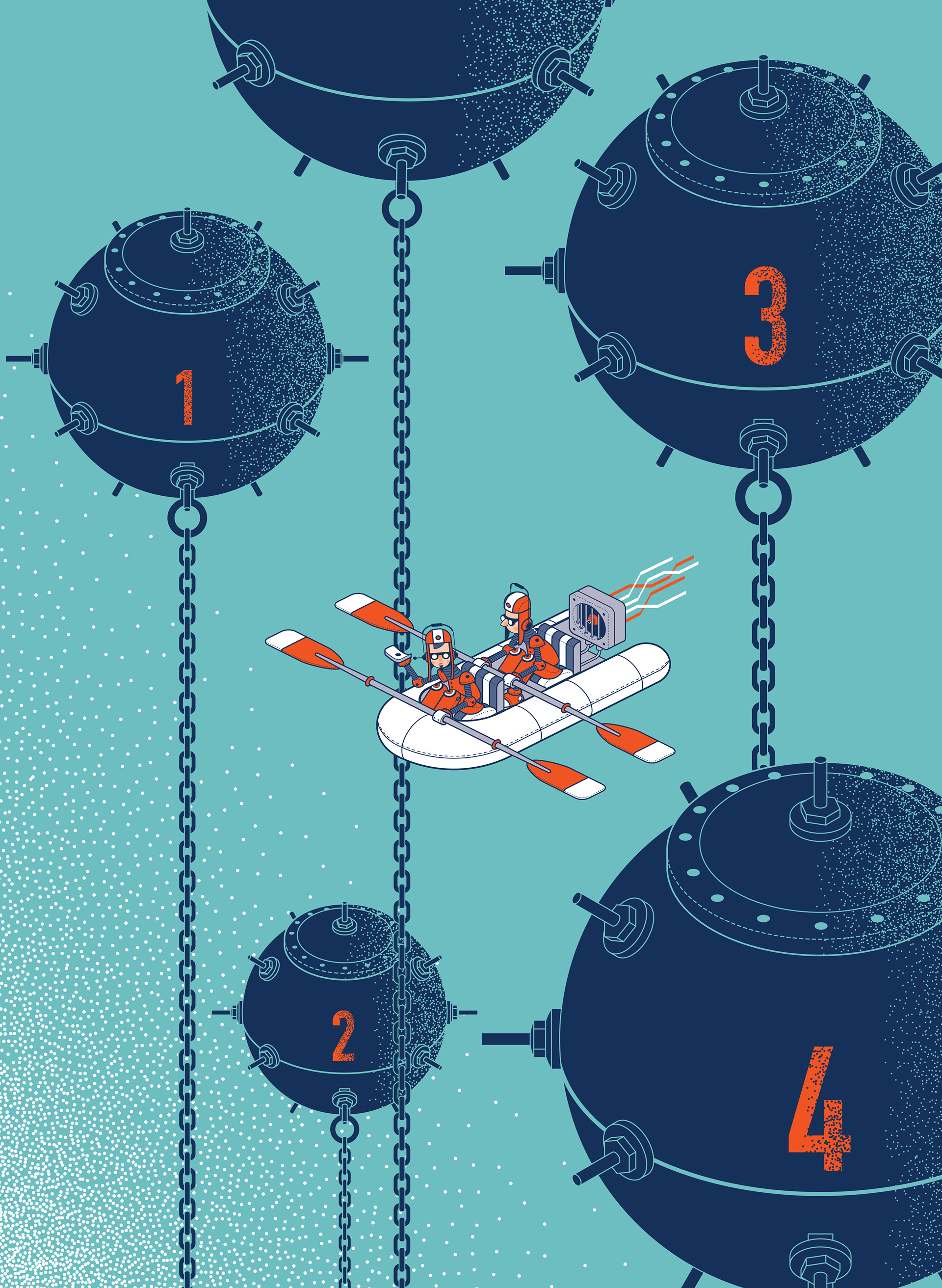Two buoys in a boat.