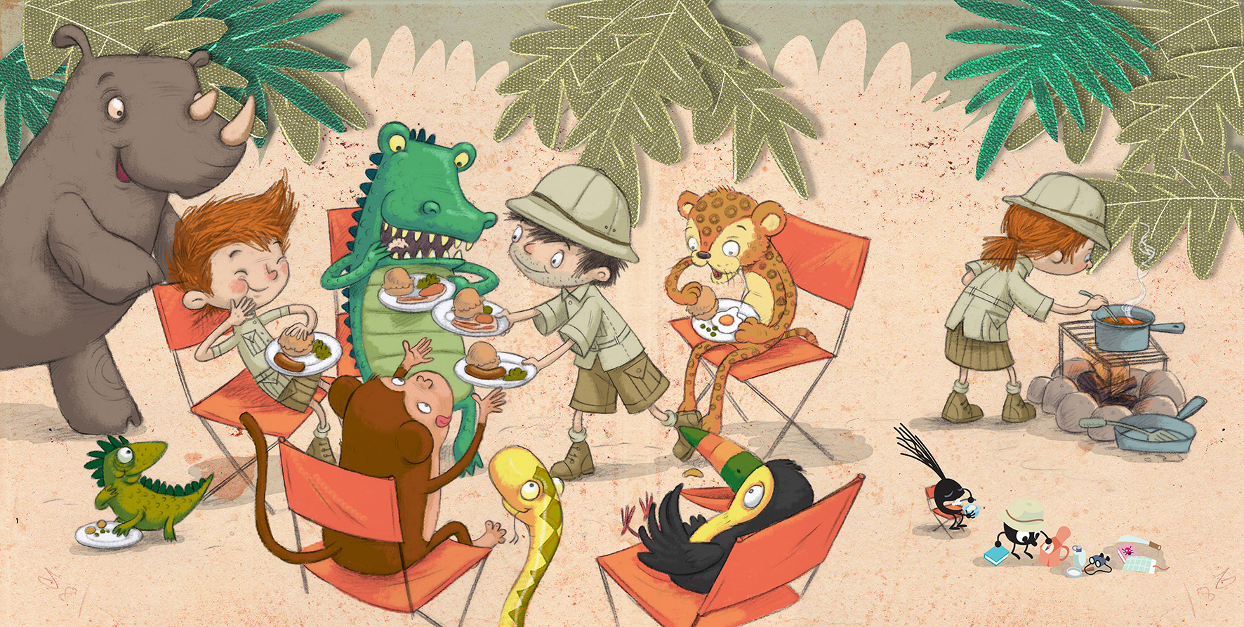 This is a selection of illustrations for a series of 'Learn to Read' books. They are all hand drawn and digitally coloured (with some collage).